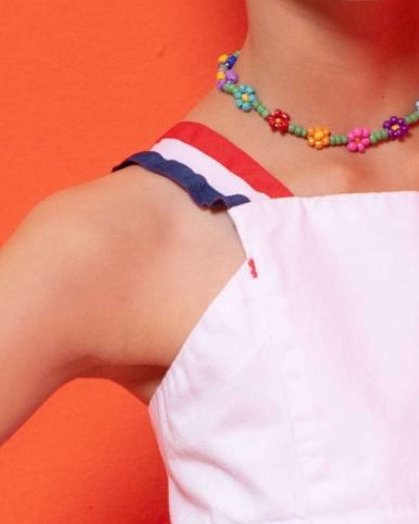 Prepare-se para se apaixonar pelo charme vibrante do Vestido Brim Branco Antonita!