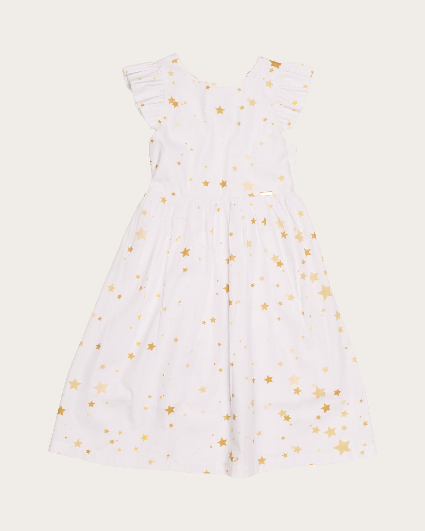 Vestido curto feminino infantil com alças largas, estampa de estrelas e saia ampla