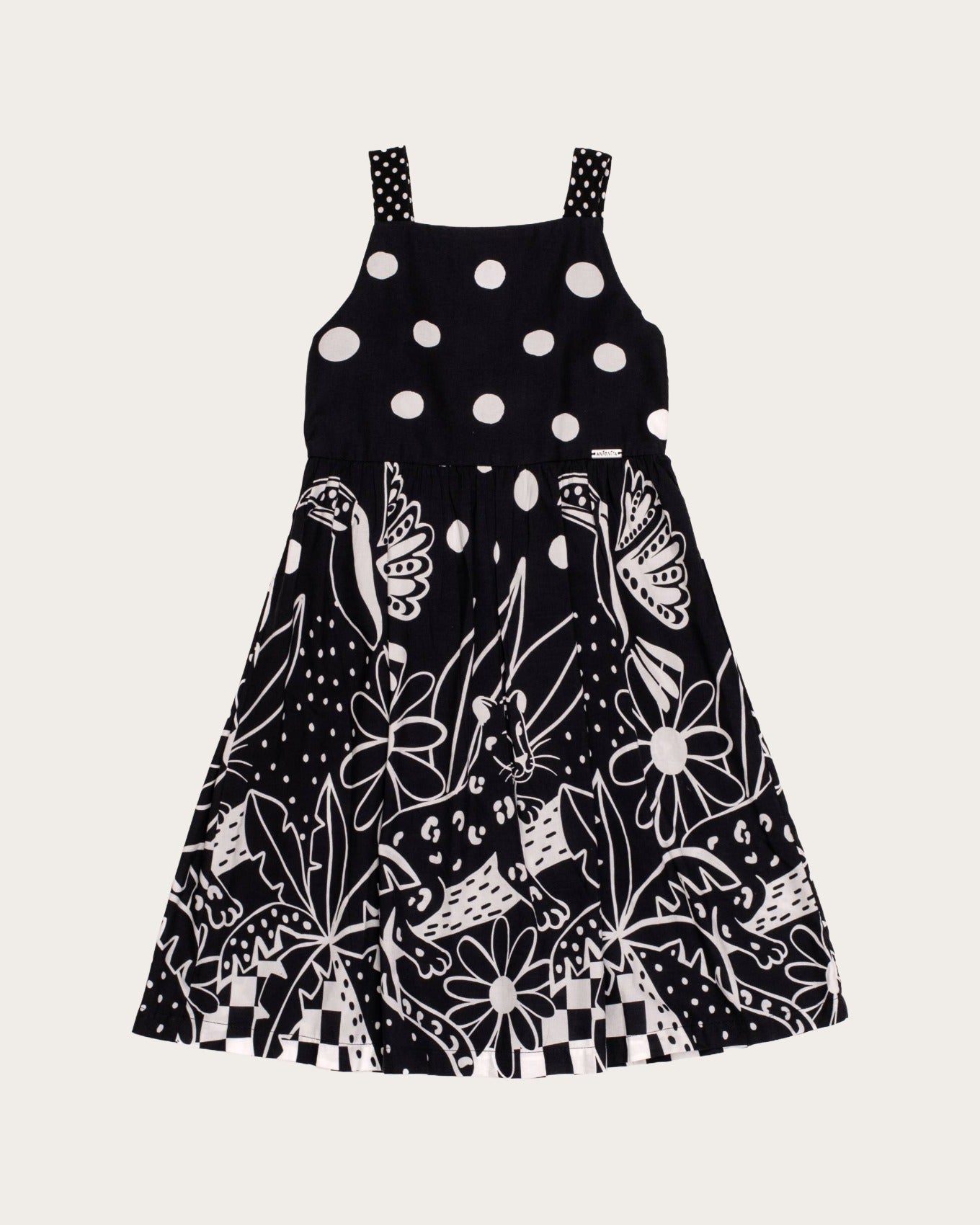 Vestido Infantil Feminino Fauna Preto e Branco Antonita